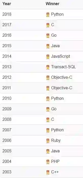 注意:SQL 自 2018 年 2 月起被重新添加到了 TIOBE 排行榜中,由于没有以往的数据可以对比,增长速度非常快,现在位居第 9 名。