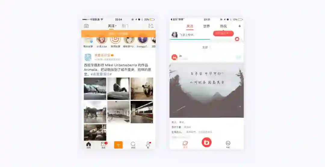 微博的中断设计就是一个很好的例子,应用的新消息列表显示了最新的内容。只要用户还停留在这个页面,应用就不会自动更新列表,只会在顶部显示一个N条新消息 ,这可以使用户在被中断后重新使用时不丢失当前位置。右边in的这种小的气泡式的提醒也是使用了比较轻量的设计形式,不会打断用户的操作。