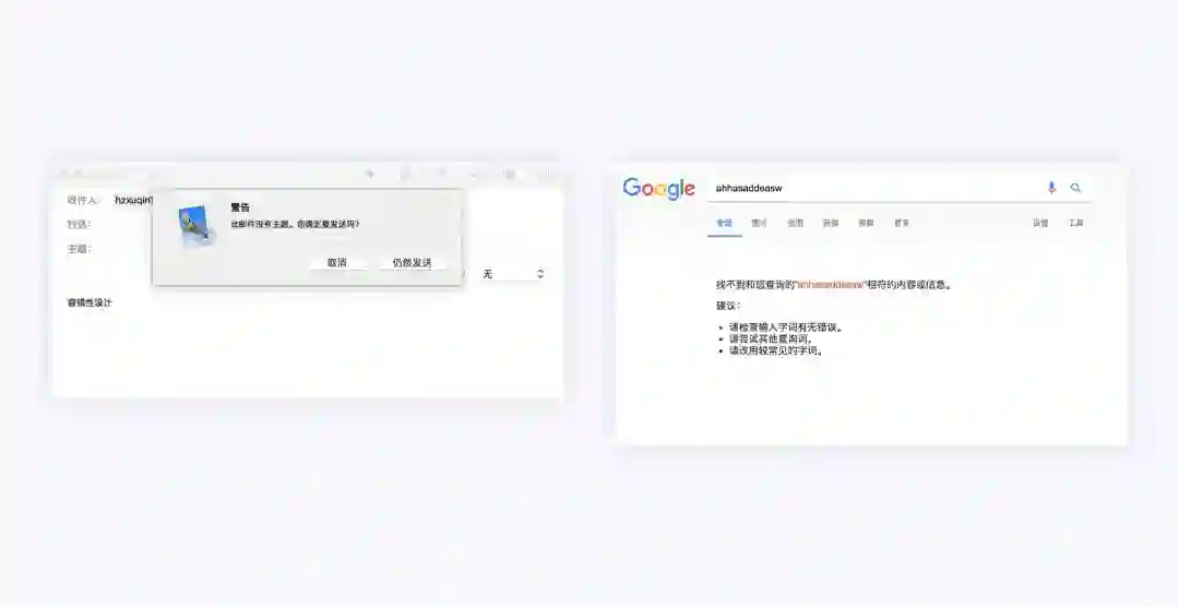 比如邮箱为了防止用户错误操作,在用户点击发送后提示没有输入主题信息,从而避免用户直接发送无主题邮件。