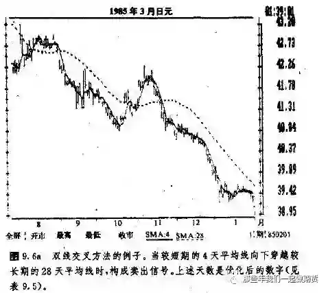 当我们采用两条移动平均线时,较长期者用来识别趋势,较短期者用来选择时机。正是两条平均线及价格三者的相互作用;才共同产生了趋势信号。