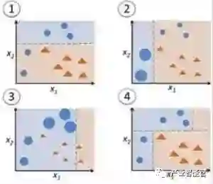非终端节点是根节点和内部节点。终端节点是叶节点。每个非终端节点表示单个输入变量(x)和该变量上的分割点;叶节点表示输出变量(y)。使用以下模型进行预测:沿着树的分割走,到达叶节点并输出叶节点上存在的值。