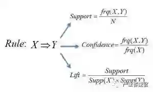 图5:关联规则X> Y的支持度、置信度和lift公式。