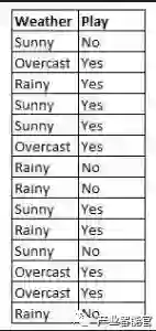 图4:使用朴素贝叶斯预测使用变量“天气”的“游玩”状态。
