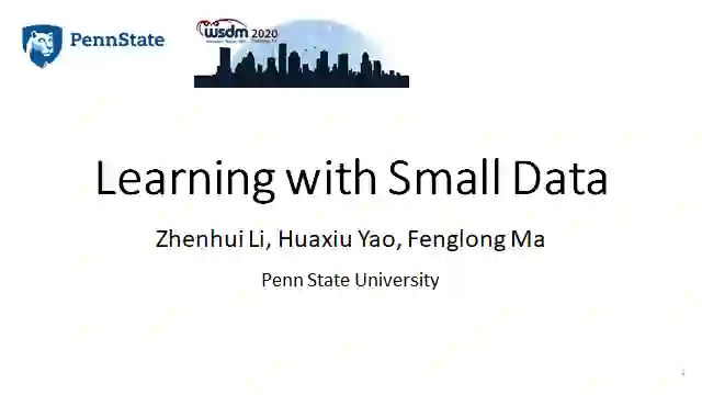WSDM 2020全称为第13届国际互联网搜索与数据挖掘会议(The 13thInternational Conference on Web Search and Data Mining, WSDM 2020),将于2020年2月3日-2月7日在美国休斯敦召开。宾夕法尼亚州立大学ZhenhuiLi, Huaxiu Yao, Fenglong Ma等做了关于小数据学习《Learning with Small Data》教程,124页ppt涵盖迁移学习与元学习等最新课题,是非常好的学习材料!