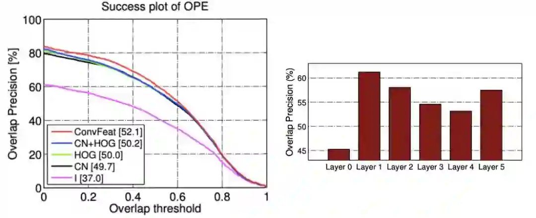 将CN/HOG特征换为深度CNN特征后,Danelljan大神做了大量实验进行对比,发现使用CNN浅层特征明显比HOG那些手工特征效果好。于是把自己ICCV15的SRDCF模型改一改顺手又发(shui)了一篇ICCV15 Workshop……也就是DeepSRDCF[5]。