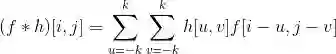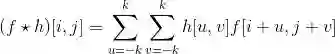 h 和 f 分别为核和图像,代表着我们要搜索的目标模版和存在要搜索的目标的图像。如果这个公式对你来说有点难以理解,那你又能否记起离散图像空间卷积运算的定义: