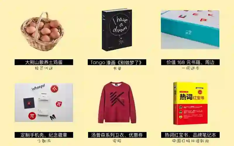 「一周进步」提供的:价值 168 元的书籍、一周进步周边
