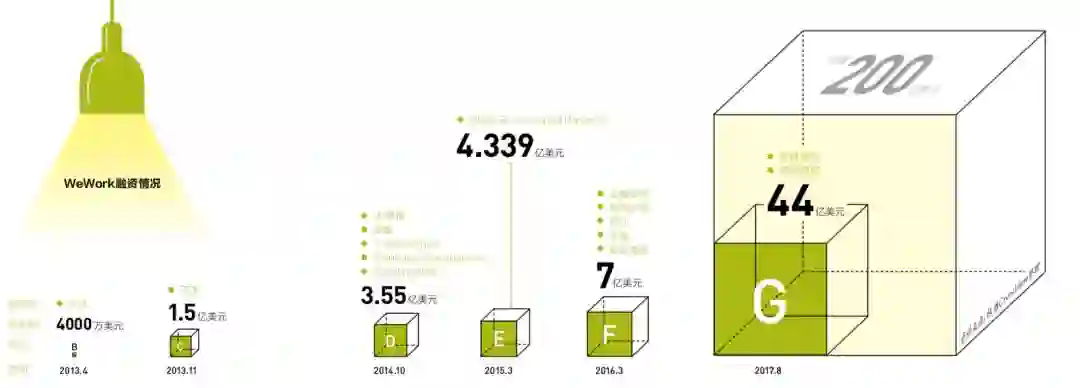 成立于2010年的WeWork在全球各地向自由职业者、中小企业提供新型办公场所,去年达到200亿美元估值。今年6月,《华尔街日报》援引消息人士称,WeWork正在寻求以350亿~400亿美金估值完成新一轮融资,此举或使其成为美国本土尚未上市的最高估值创业公司之一,仅次于Uber。10月传出的消息称,日本软银正就出资150至200亿美元收购WeWork多数股权进行谈判。对此,中国WeWork方面表示并不清楚。