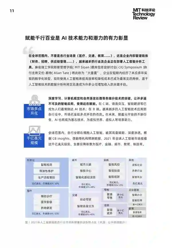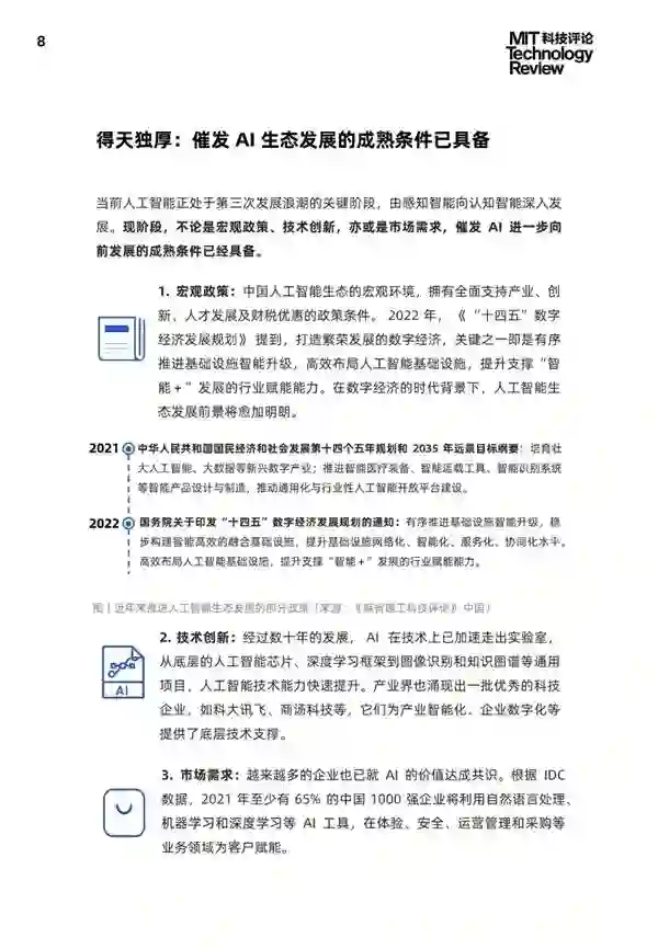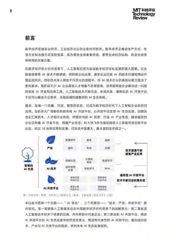 为洞彻 AI 产业与生态现状,《麻省理工科技评论》(MIT Technology Review)中国发布《2021 中国数字经济时代人工智能生态白皮书》。