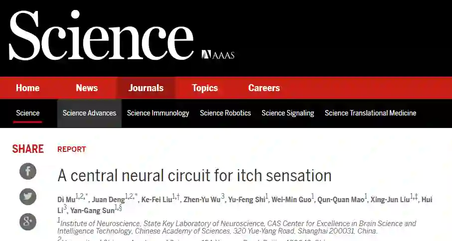 本文转载自“中国科学院神经科学研究所”,原标题:《科学》发表中科院神经所关于痒觉传导机制的研究成果。