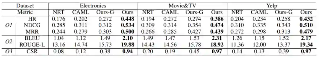 我们在 Amazon Electronics、Movies&TV、Yelp 三个数据集上模拟用户反馈进行了充分实验。实验结果显示提出的可解释对话推荐模型在推荐准确性、可解释性以及用户反馈满足比例上均明显优于基准算法,达到了系统设计的各个目标。