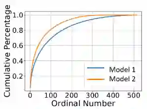 首先,我们选择了3个 RL 模型玩 Gravitar 游戏,其中模型1分数最高,模型3分数最低。通过可视化三个模型的特征,如图3所示,分数越高的模型提取的特征越分散。我们进一步观察特征矩阵的特征值分布,如图4所示,分数越高的模型奇异值分布越均匀,而不是集中在少数奇异值上。由此,我们提出强化学习模型表达的指标,称为 NSSV,定义如下: