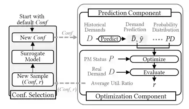 PreVMP 问题是典型的预测+优化(Prediction+Optimization)问题。针对预测+优化问题,直观的解决方法是两阶段方法(Two-Stage Method),首先利用历史数据预测未来需求,然后再基于预测的结果优化配置方案。两阶段方法的不足之处在于其假设预测的结果是准确的,然而在实践中预测误差是无法避免的。