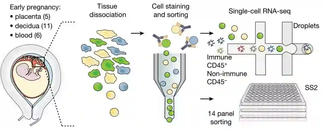 当前,人类细胞图谱(Human Cell Atlas)等国际研究项目正在尝试鉴定参与发育、健康和疾病的所有细胞类型。在人类妊娠早期,胎儿胎盘植入子宫内膜(蜕膜,decidual)、胎盘滋养细胞与母体细胞混合。这种关系对于妊娠成功至关重要,但是妊娠早期蜕膜内的细胞互作仍不清楚。