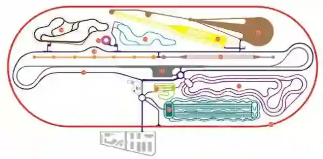 试车场占地面积96万平方米。主要设施有:长4000米的长圆形高速环形跑道,分三车道,设计车速160公里/小时,最高车速可达200公里/小时。