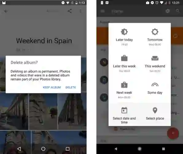比如说,Google Photos 添加了确认对话框,避免用户不小心删除相册。而收件箱的闹钟功能(让邮件打个盹儿),则可以一键设定在某段时间后让邮件重新出现在眼前。