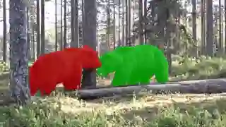 如下图视频片段中,两只熊既互相部分遮挡,有时也会被树(背景)遮挡。
