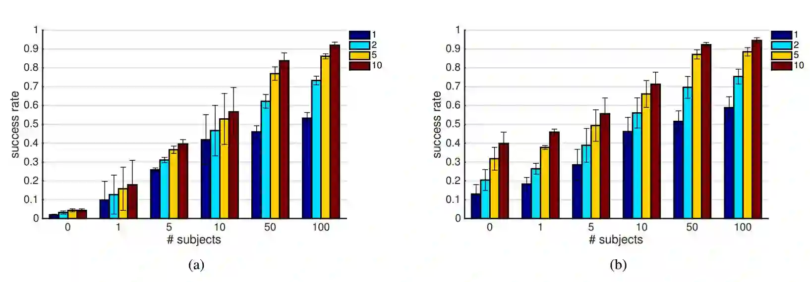 AGN 能得到可以大规模部署的攻击。我们特别展示了我们称之为「通用」的攻击,因为它们能得到一些(10 个或更少)恶意设计的眼镜,其中大部分(而不只是一个攻击者)都可以被用来避开人脸识别。