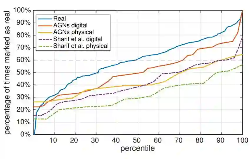 在这篇论文中,我们在空间的全部三个维度上改进了通过实体方式实现的攻击。我们的攻击的一个关键组件和新颖之处是:不同于只能得到单个可能被某个机器学习算法误分类的大多数攻击算法,我们的方法基于生成对抗网络(GAN)近来的研究成果,可以开发出输出是可以通过实体方式实现的攻击实例的神经网络。我们将这种攻击网络称为对抗生成网络(AGN)。我们将 AGN 的目标设定为两种准确度达到了人类水平的基于 DNN 的人脸识别算法——VGG 和 OpenFace,使该 AGN 可以输出能让攻击者避开正确识别或不引起注意地伪装成特定目标的眼镜。为了证明 AGN 也能在人脸识别之外的领域起效,我们还训练了可以欺骗用于识别手写数字的分类器(是在 MNIST 数据集上训练的)的 AGN。