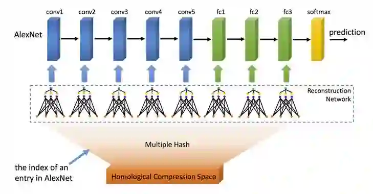 到目前为止,多层次乘积量化能够实现 1/8 无损压缩。有没有压缩率更大的压缩算法能够支持超大规模 DNN 模型?多种子随机哈希正是这样一种压缩算法:在无损或者可接受的有损范围内,它能够任意配置压缩率,适用于不同应用场景。图 4 是它的示意图: