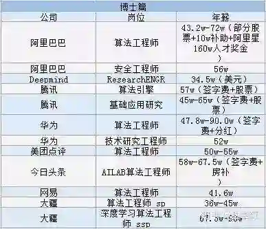 可以看到,2019年博⼠校招⾥,科研创新⽐较注重的公司都给的⽐较⾼,Deepmind就不谈了,这个不在国内。但是,也要注意并不是所有博⼠都给这么⾼package,具体需要看研究领域是不是匹配,也要看公司是不是需要,所以就题⽬中的这个图来说,显然CV,ML,通信部分的先进研究是华为关注的重点。