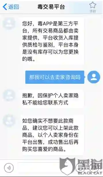一名消费者通过毒APP以889元价格购买一双adidas Ultra Boost 4.0xParley Carbon 海洋之心,42.5尺码,自负顺丰邮费23元。收到鞋试穿后发现小半码,寻求客服更换时,被告知毒APP是第三方平台,所有商品由卖家提供,平台收货入库提供质检与鉴别服务,因平台本身没有库存,所以不可以更换。当买家提出联系卖家要求,客服回应:“抱歉,因保护个人卖家隐私不能给您联系方式。”还给出建议,如果确实不想要这款商品,建议在买家以卖家身份在平台出售。