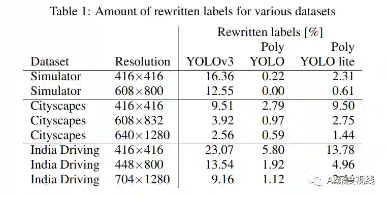 作者在不同数据集上对重写的标签率进行了统计和比较,可以看出原始YOLOV3的标签重写率还是蛮高,而改进后的POLY-YOLO大大降低了该重写率。
