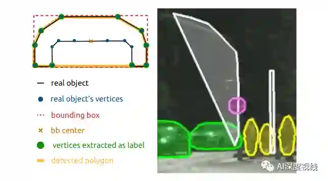 在这里,我们引入一个多边形表示,它能够检测具有不同数量顶点的目标,而不需要使用会降低处理速度的递归神经网络。