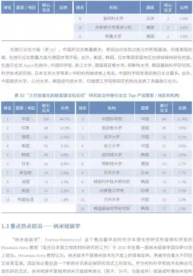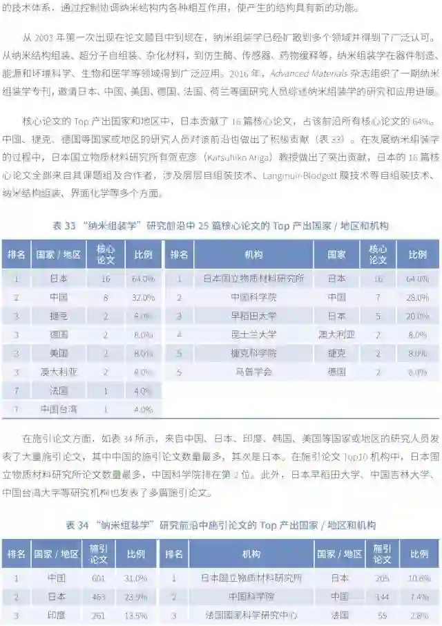 在纳米技术领域,不仅继续有具体的前沿研究入选,而且首次出现宏观的研究概念――纳米组装学。