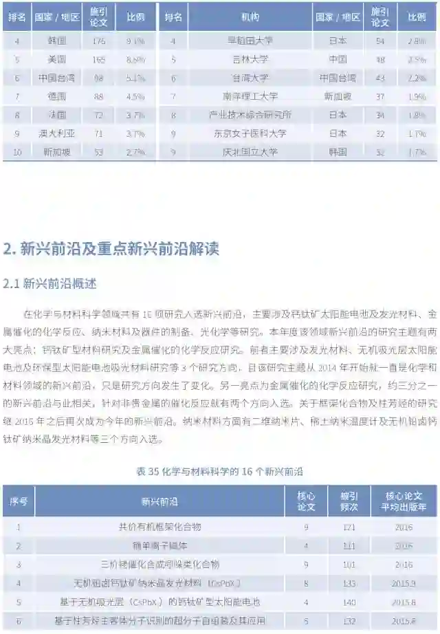 本文节选《2017研究前沿》中化学与材料科学2017研究前沿报告。(点击文末阅读原文,下载报告全文)