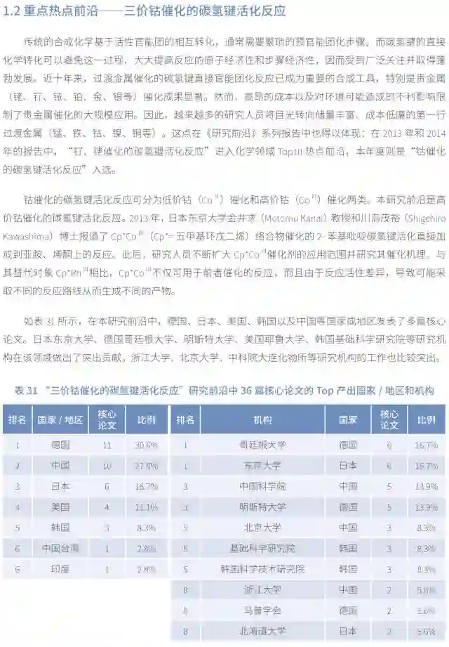 在有机合成领域,碳氢键的活化反应也是连年入选,往年侧重在钌、铑等贵金属的催化转化,今年是非贵金属钴的催化转化,另外今年还突出了间位碳氢键的活化。