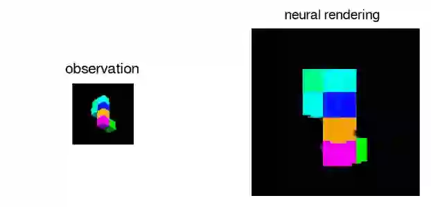 GQN 的 表征网络不需要任何物体级别的标签就可以学会计数、定位以及分类。即便网络生成的表征规模不大,GQN 对于提问视角的预测也很准确,与事实相差无几。这表明表征网络对场景的感知也很准确,比如准确描述了下面这个场景中组成积木的方块的具体状况。