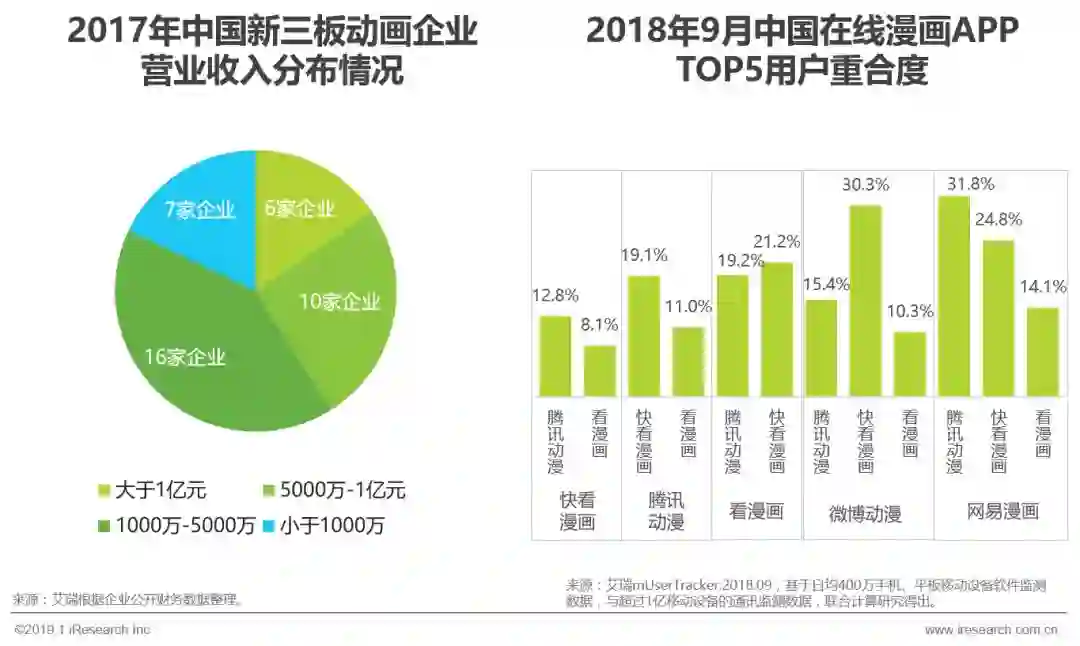 中国动漫产业在2013年才借助移动互联网和资本的力量开始快速发展起来,经过5年多的时间,也许各个细分赛道都已经产生了自己的头部企业,但尚没有哪一家企业能够占据不可动摇的垄断地位。而且,对比日本、美国等动漫产业已经发展较为成熟的国家,中国动漫产业的产值规模相对于自己庞大的受众规模而言还有很大的增长空间,真正IPO上市了的动漫公司也只有以玩具制造起家的奥飞娱乐。新三板挂牌上市的动画企业2017年营业利润破亿的仅六家,漫画阅读平台还是互联网企业正在争相抢占的高地,在线漫画app间用户重合度较高,说明用户针对内容选择平台,平台间尚未形成排他性关系。从长远的发展逻辑来看,中国的动漫产业还有很大的想象空间。