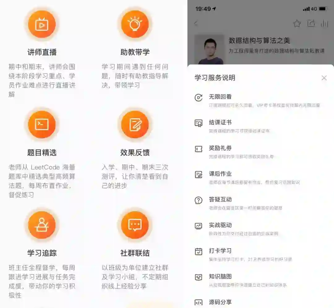 左图训练营服务,右图专栏课程服务