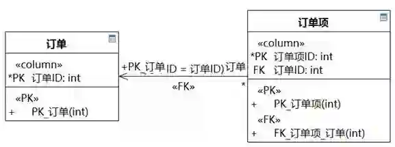 这里的判断原则和关系数据库建模有的时候是矛盾的。数据库建模中,哪个表中有另一个表的标识,判断原则是多重性。如图8-106,类图中“订单”知道“订单项”,但映射到关系数据库表,“订单项”表中有“订单ID”。
