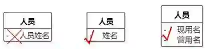 如果人和狗都是哺乳动物,地位差不多不好判断,我们可以把问题往极端推,就可以看得更清楚。如图8-104,人有一个属性姓名,类型为字符串,图中左右两侧是等同的。显然“人”知道“string”是合理的,但是背后的原因不是人比字符串更“复杂”(8.1.6.7已经讲述过这个问题),而是系统很可能更关心人的状态变化。
