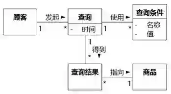 “8.1.6.4 切勿照猫画虎”中的图8-52说系统不需要记住哪个顾客查询过哪件商品,所以“顾客”和“商品”之间没有关联。如果系统确实要维护查询的信息,两个类之间的关联当然可以存在,不过未必是直接关联,很可能是像图8-97。常见的电子商务系统中,需要维护的应该是图8-97上部的三个类:顾客、查询和查询条件,这样顾客可以反复使用之前设置过的查询条件。