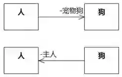 关于确定关联的方向原则,我们先来看看常被讨论的人和狗的例子。如图8-103,日常生活中我们可以说人养了宠物狗,也可以说狗有主人,假设系统要记住人和狗的关联,哪一个更合适呢?
