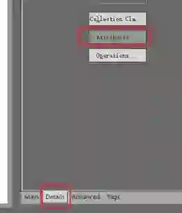 【步骤2】单击“Details”页签,单击“Attributes”按钮,在“Name”栏输入“开始日期”,“Type”栏输入“DateTime”。