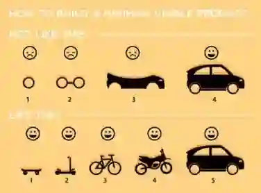 5. 以下是网络上较流行的描述"最小可行产品"(minimum viable product)开发过程的图(图片来自http://www.nickmilton.com/2015/07/lean-km-and-minimum-viable-product.html)。 8-16 "最小可行产品"(minimum viable product)开发过程 从本章内容出发,该图作者可能存在的认识上的最大错误是: A) 认为造汽车应该先从轮子造起。 B) 认为造滑板车一定比造汽车简单。 C) 认为应该小步改进,先给客户一个滑板车也是改进。 D) 认为客户目前停止不动,随便给个什么车都是救命。 |