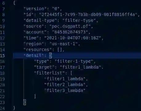 目标 lambda 完成其任务,并将事件目标(detail.target)替换为detail.filterlist json 列表中的下一个 lambda,也就是filter2_lambda。