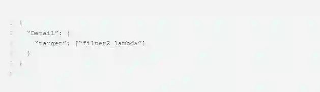 基于测试事件的具体detail.target 值,会有一个规则匹配并执行。在我们的场景中,这将会导致事件 / 消息会路由到与规则关联的目标 lambda 上,即filter1_lambda。