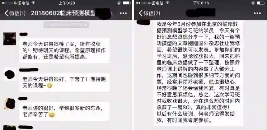 学员好评无数,前18期学员已有多人成功发表SCI论文。建微信群老师课后长期回答学员所有问题;独家课后发放课堂同步视频,供学员复习