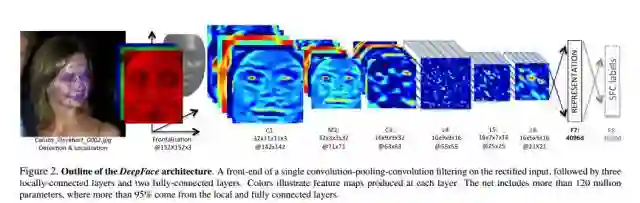 DeepFace与之后的方法的最大的不同点在于,DeepFace在训练神经网络前,使用了对齐方法。论文认为神经网络能够work的原因在于一旦人脸经过对齐后,人脸区域的特征就固定在某些像素上了,此时,可以用卷积神经网络来学习特征。