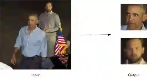 对Detection后的图片进行二维裁剪, scale, rotate and translate the image into six anchor locations。 将人脸部分裁剪出来。