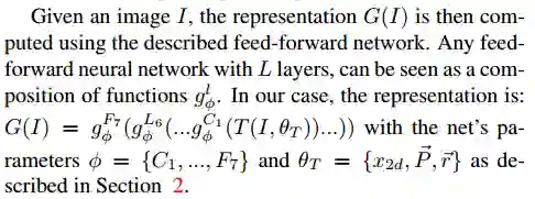 给出图像I,则其特征表达G(I)通过前馈网络计算出来,每一个L层的前馈网络,可以看作是一系列函数: