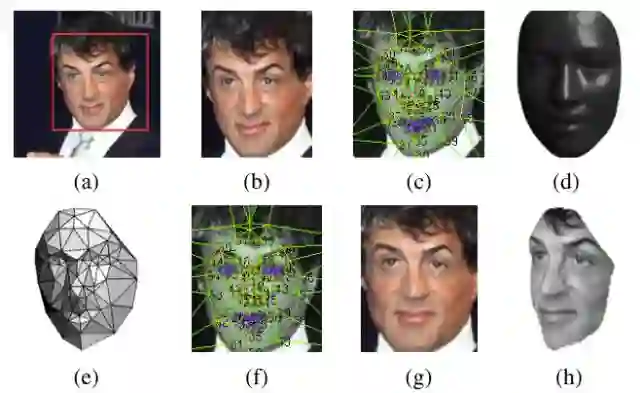 找到一个3D 模型,用这个3D模型把二维人脸crop成3D人脸。67个基点,然后Delaunay三角化,在轮廓处添加三角形来避免不连续。