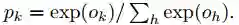 最后一个全连接层F8的输出进入了一个K-way的softmax(K是类别个数),即可产生类别标号的概率分布。用Ok表示一个输入图像经过网络后的第k个输出,即可用下式表达输出类标号k的概率: