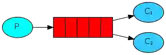 2、单对多:一个发送端,多个接收端,如分布式的任务派发。请见下图: