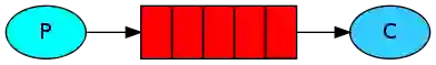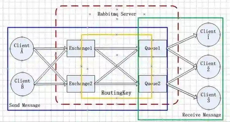 消息从发送端到接收端的流转过程即 RabbitMQ 的消息工作机制,请见下图: